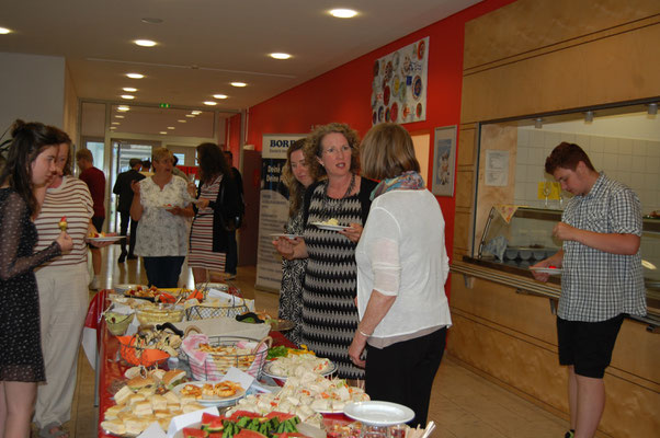 In geselliger Runde und bei leckerem Fingerfood (vorbereitet durch die Praxisklasse) wurden im Anschluss Erinnerung ausgetauscht und Abschied gefeiert. Es war ein schöner und gelungener Abend - Mission erfolgreich!