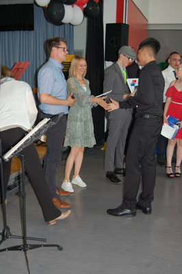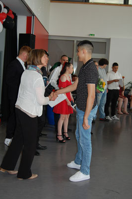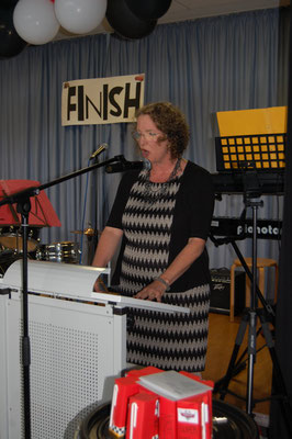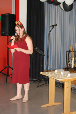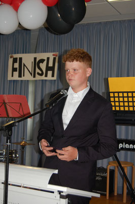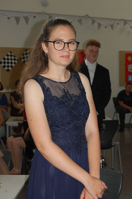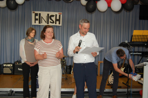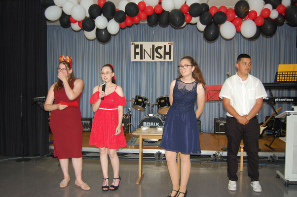 Der Schulsprecher Domenik Fuchs gratulierte den erfolgreichen "Sportlern" im Namen aller Schülerinnen und Schüler zu ihrem Erfolg und forderte sie auf, auch später mal besuchsweise an ihre alte Wirkungsstätte zurückzukehren. Frau Koch als Vorsitzende des Fördervereins und Frau Wörn als Schulelternbeirätin blieben ebenfalls ganz im Thema Fußball und beglückwünschten die Abgängerinnen und Abgänger zu ihren erbrachten Leistungen und richteten den Blick auf die Zukunft und die Notwendigkeit Teamplayer zu sein. Auch Frau Günther betonte in ihrer Rede mit vielen sehr bekannten und lustigen Fußballzitaten wie wichtig die gelegte Grundlage für die weiteren Jahre als "Profis" werden.