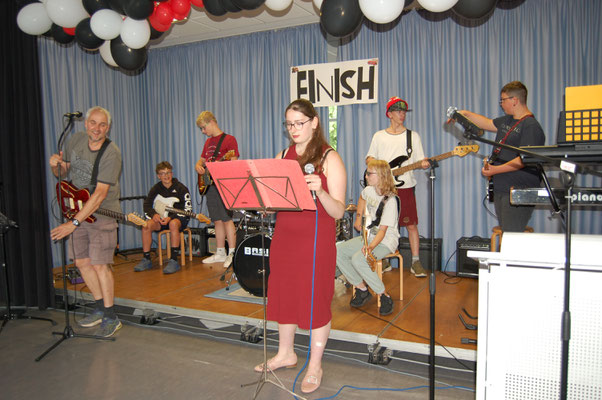 In einer passend dekorierten Aula ermutigten Frau Schäfer und Herr Schneider die Schülerinnen und Schüler sich auf ihre "Superkräfte" zu verlassen, um die anstehenden "Missionen" nach der Schule zu meistern. Auch Laura Paulus (Schulsprecherin), Frau Burgard (Schulelternbeirätin) und Frau Koch (Vorsitzende des Fördervereins) wünschten den Abgängerinnen und Abgängern alles erdenklich Gute und auch Ausdauer, wenn Probleme sich nicht sofort lösen lassen. Den musikalischen Rahmen bildete der Auftritt der Schulband unter Leitung von Herrn Möller.